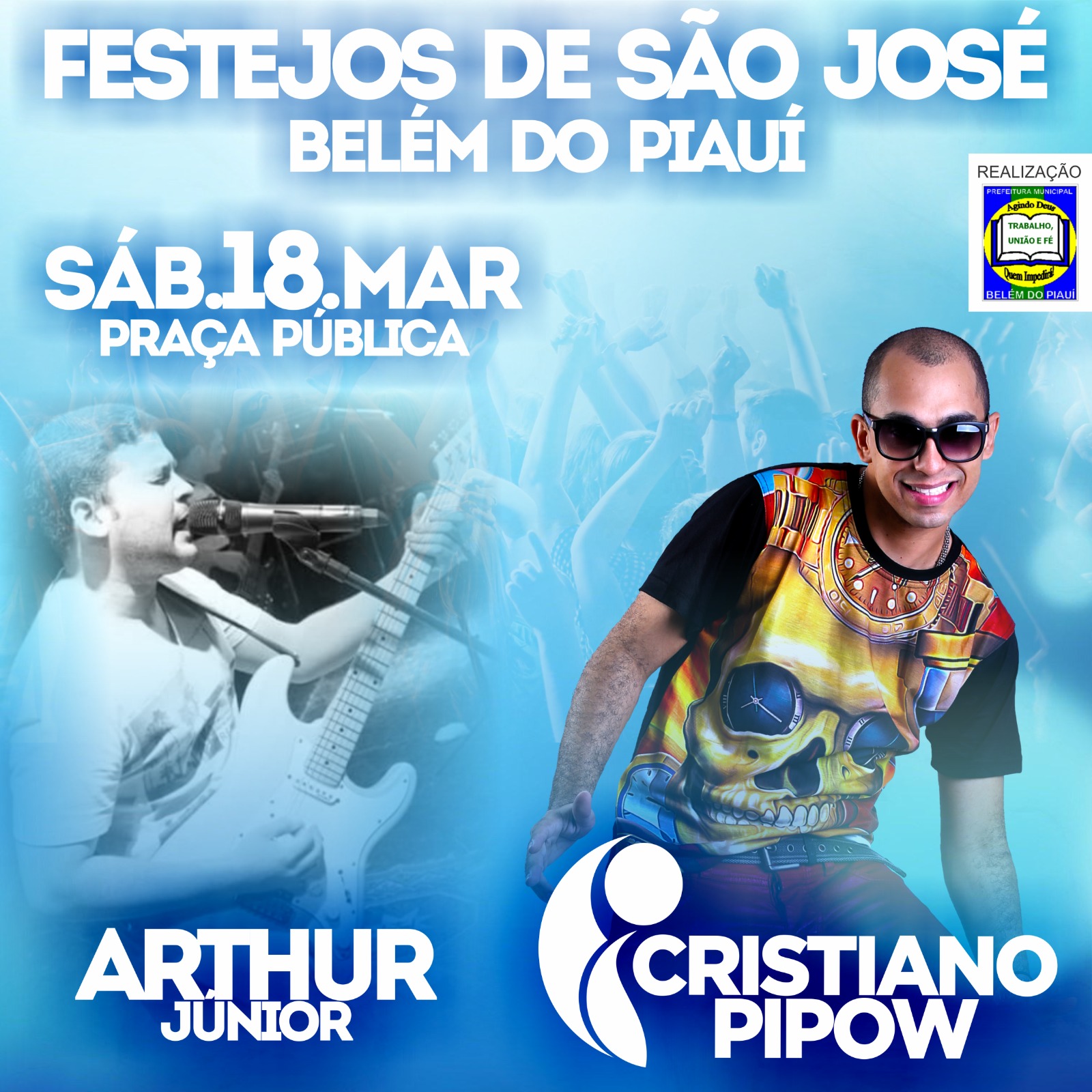 Cristiano Pipow e Arthur Júnior farão shows em praça pública nos festejos de Belém